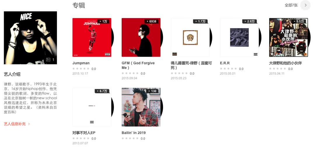 ▌云村显示,大律大律野从2018年中才开始发歌