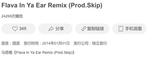 ▌虾米显示《Flava In Ya Ear Remix》发布于2014年,1月1日