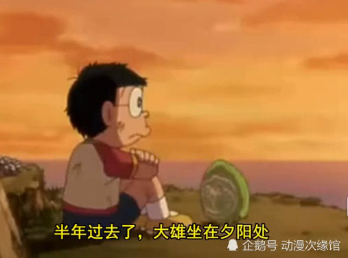 大雄一直坐在海边眼巴巴的盼着,途中也有船只经过,但是他们都没有发现大雄。大雄每天都在这里坐着,半年过去了,哆啦A梦还没来,十年过去了,大雄已经变成了野人样子,还是不死心的等着。