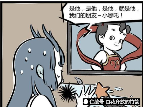 然后当龙女一打开电视剧,就看到了很受欢迎的一部卡通片,是关于哪吒的,片头曲几乎耳熟能详了,看见这个,龙女连海胆都吐出来了。