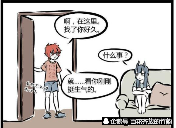 好不容易和哪吒闹完了的红孩儿来到客厅,看龙女缩坐在沙发上,刚刚他找了他很久了,龙女问了一句怎么了,红孩儿说感觉她挺生气的,虽然看不出来,也不知道为什么。