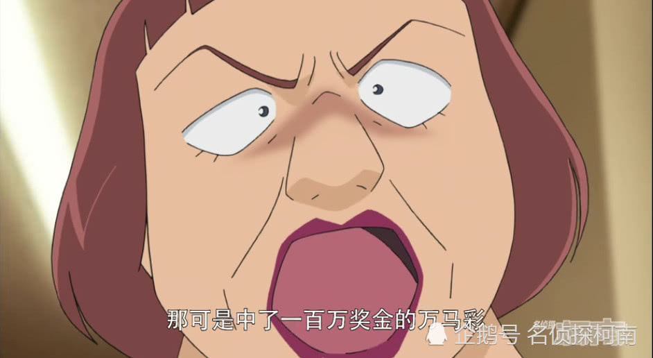 这可把小五郎和柯南吓的啊,这不是在关公面前耍大刀吧?跟我们完推理。这个不算什么,因为就算店员知道毛利小五郎中 万马彩又能怎么样呢?也不是你的,你只能看着眼红。然而,突然店门被推开了,来了个胖女人。这个女人可不得了啊。她一进来就到处找钱包,结果在厕所找到了。而且她明目张胆的说自己钱包虽然找到了,但是里面的彩票被偷了。这个,呵呵,这个怎么感觉好像是在演义的。这可让毛利小五郎虚了啊。