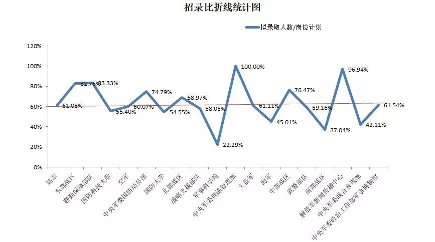 从图表可以看出,各招聘单位招录比虽有不同,但基本都在60%左右上下浮动。
