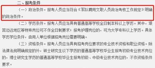 《全军首次面向社会公开招考文职人员公告》报考条件中,政治条件被放在了第一条。
