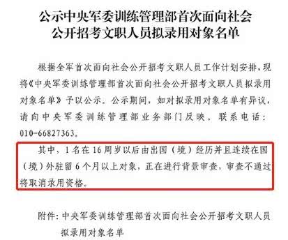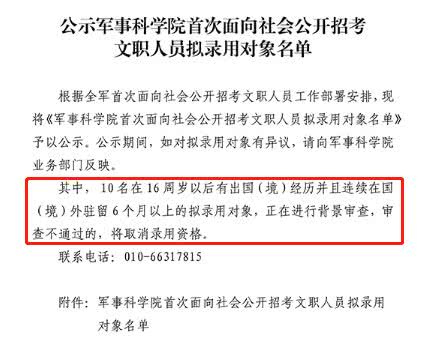 在已公示的拟录取名单中,部分招考单位明确指出,对16周岁以后有出国(境)经历的拟录取对象进行背景调查,审查不合格也将去下录用资格。