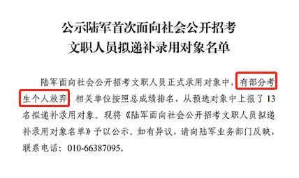 从已公示的递补名单公告,可以看出,即使经历了残酷的笔试pk,进入面试,最终确定为拟录取对象,也有部分人选择主动放弃。