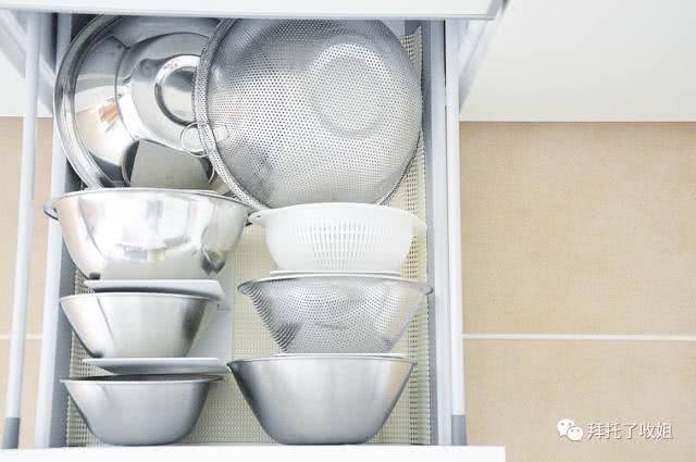 以厨房为例,可以将厨房物品分为食材、烹饪工具、餐具三大类。在烹饪用具中,又可按大、中、小三类摆放在相应的位置,这样物品永远只有三类,整理的时候也不会混乱不堪。