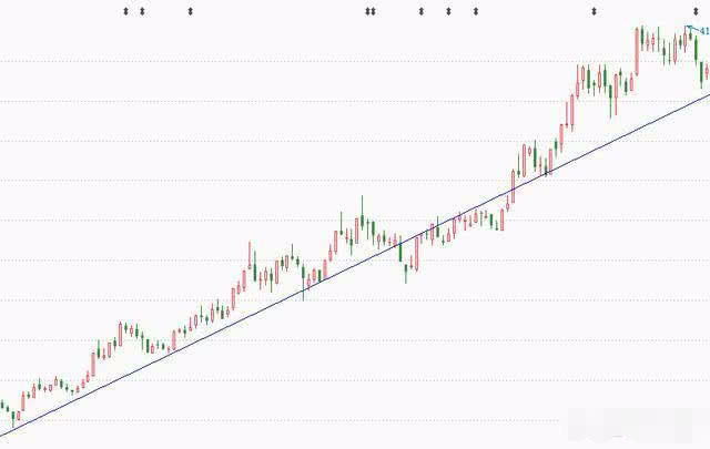 实体点虽是优先方向,影线并不是不能划线,我们一定要明确,趋势更多的是一种方向判断,有时候你图上不划线,心中可能已经划了线,这个时候的趋势方向指引是比较明确的,如果过度纠结于划线的位置,那可能是舍弃了重点,一定不能在这个地方过度沉迷。划线与应用。划线仅仅是第一步,目的还是应用,划线的实体或者影线是主观确定,走势的验证是客观落脚,根据趋势线与当下走势的位置关系,