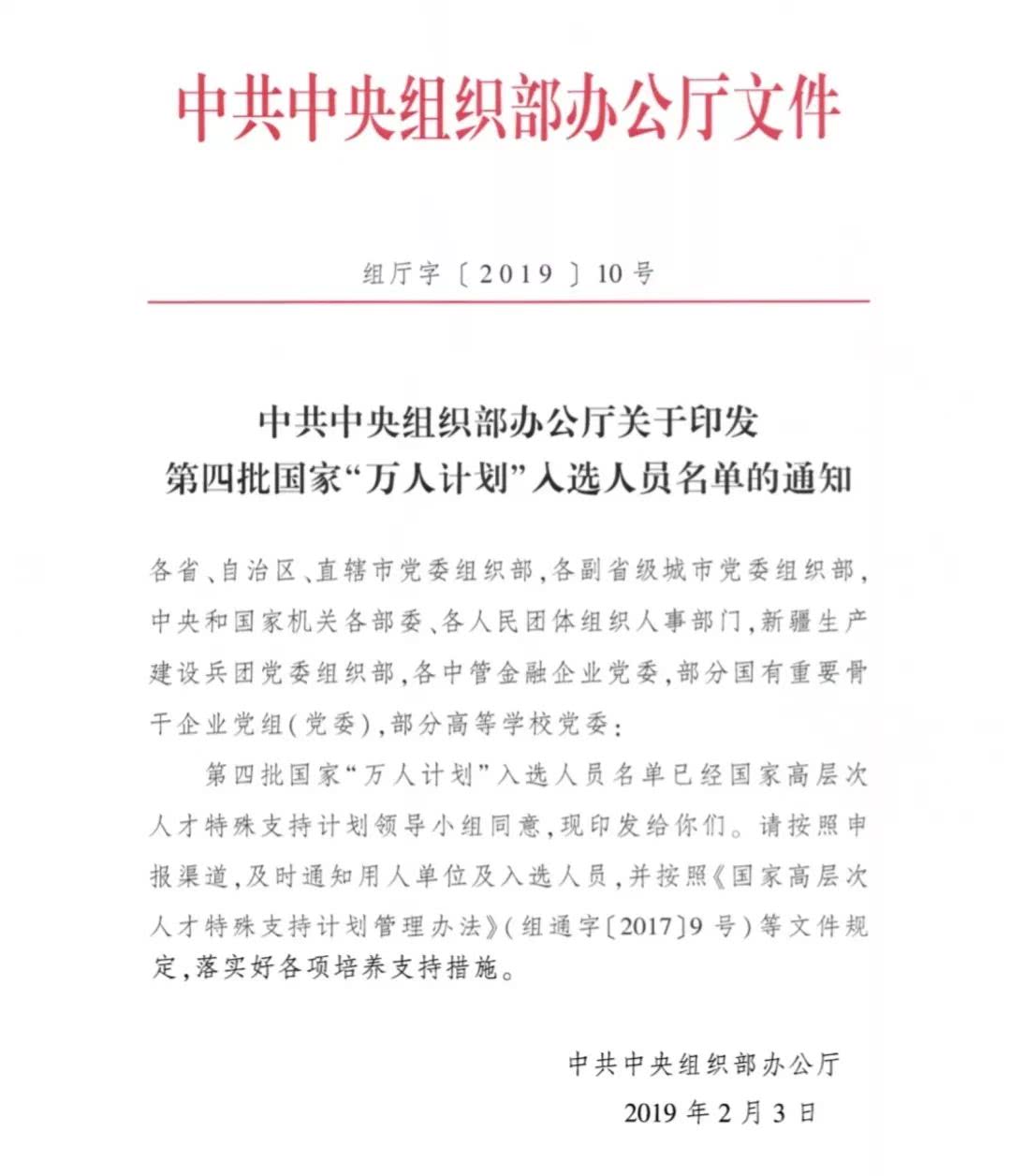 日前,中共中央组织部办公厅下发了《关于印发第四批国家“万人计划”入选人员名单的通知》,其中自然科学类的青年拔尖人才210人,我校谢建华教授入选。