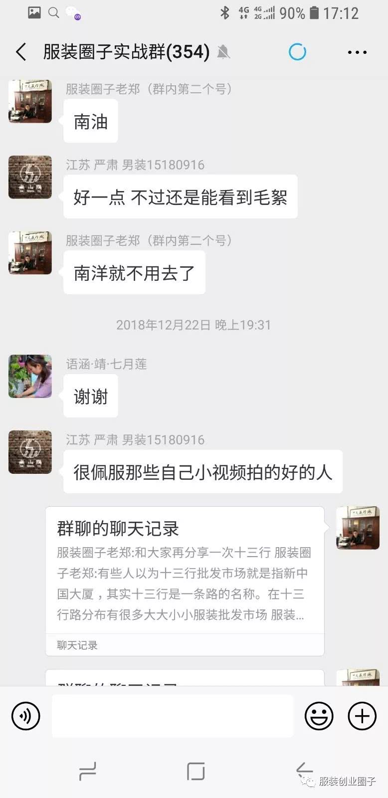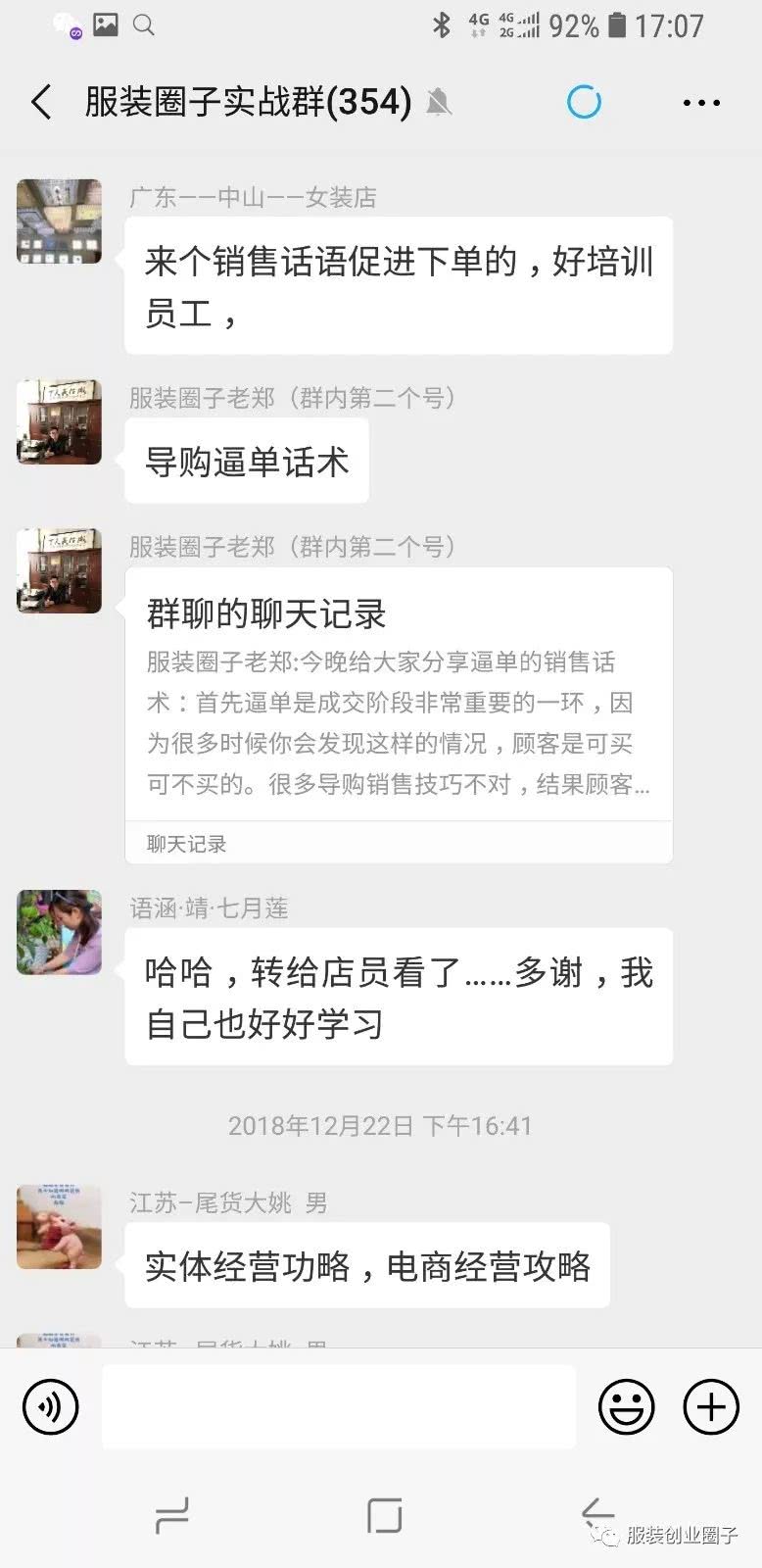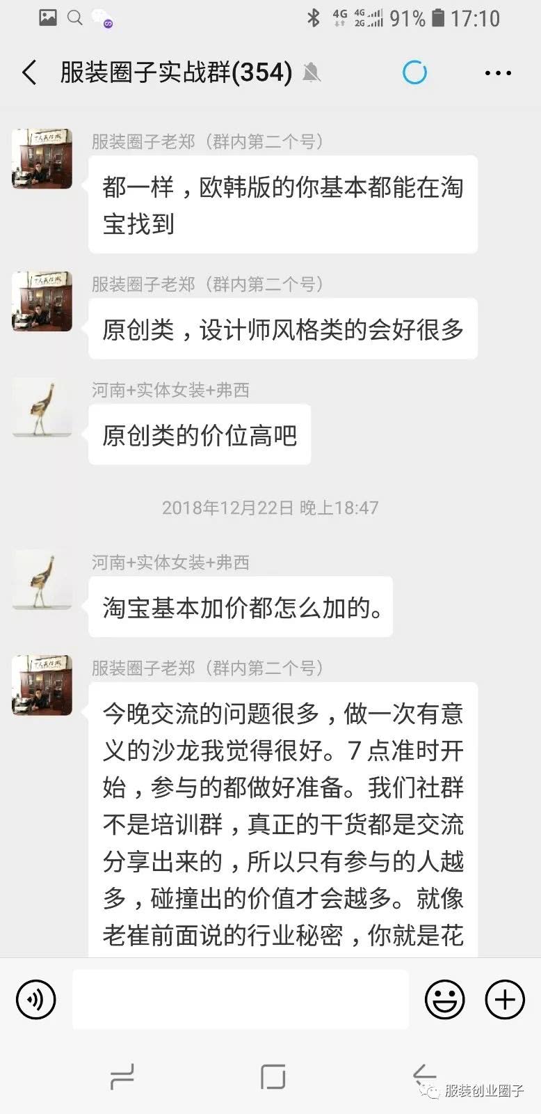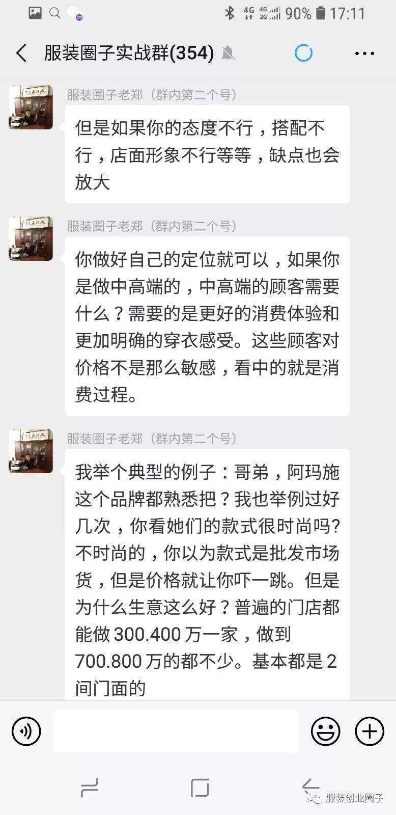 所以我做社群的初心就是希望能够提供更多有实际意义,有实操性的经验,干货和资源。如果你有任何实体店,工作室,品牌连锁,微商,淘宝,批发,工厂,社群,自媒体,短视频,货源,资源,经营,管理上的问题,都可以在社群内联系老郑。老郑从批发起家,到做工厂,和国内很多知名品牌有着生产经营合作。只有自己有实操的经历经验才能帮助群友。尽全力真正的帮助到每一位服装人去做好服装生意。我没有什么一夜暴富的技术能说,因为我也不会忽悠。想要做好生意必须是持续不断的积累和努力,到某一个点的时候就会爆发。我们社群有些成员做服装赚了几十万,几百万,几千万。没有一个是突然就有。持续的积累+机遇才会产生爆发。所以每一个人都应该充满信心,因为这个行业是容易带来无数个可能的。