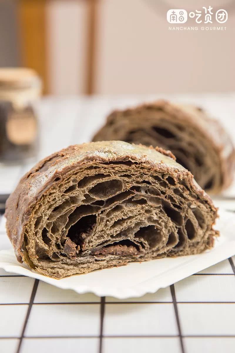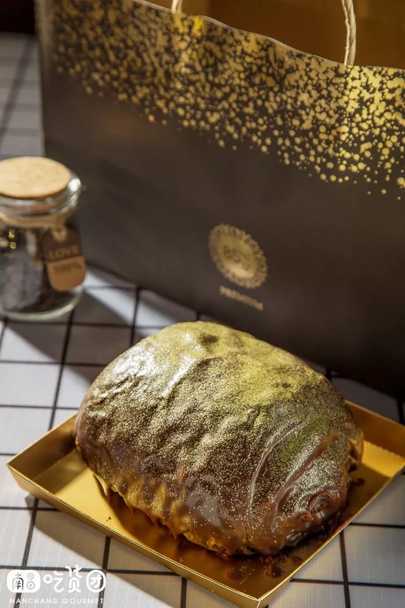 这款铂金包有点类似脏脏包,表面淋了巧克力酱撒上铂金碎做装饰,会呼吸的好面包,蓬松感十足,松软可口,里面还加入了巧克力碎增加口感。